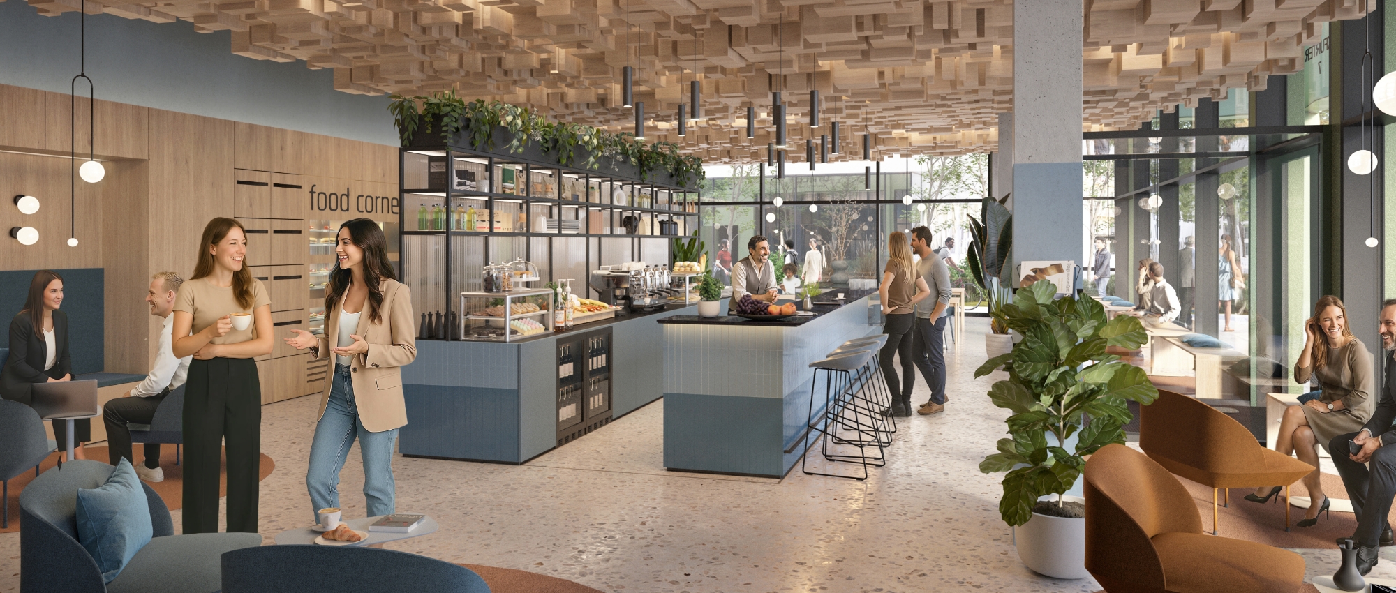 Von der Barista-Bar mit Healthy Food bis zum Fitness-Bootcamp – kuratierte, hotelähnliche Service-Angebote stärken Gesundheit und Wohlbefinden im ON.